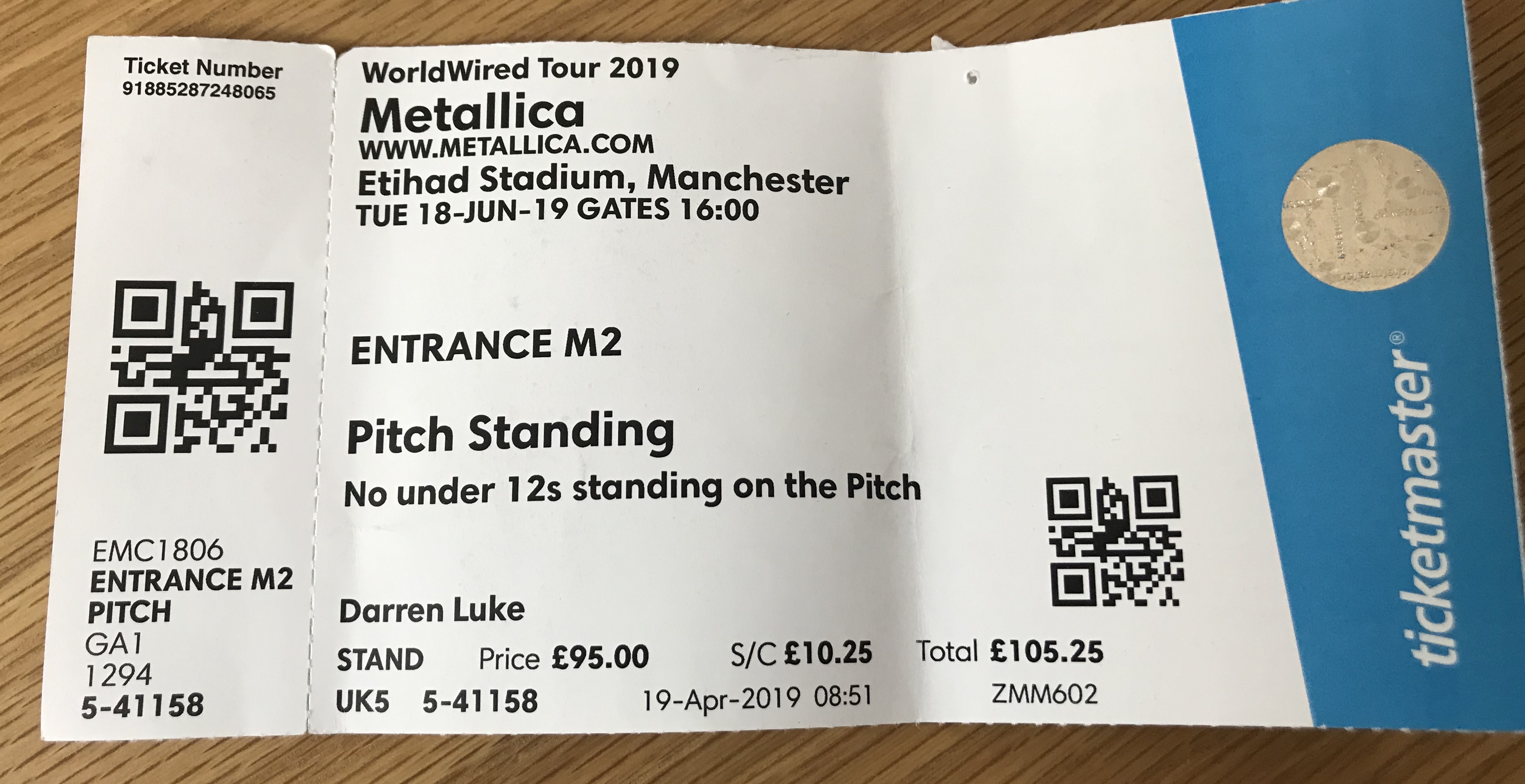 On the 18th of June 2019 I went to the Etihad stadium in Manchester to see Metallica.