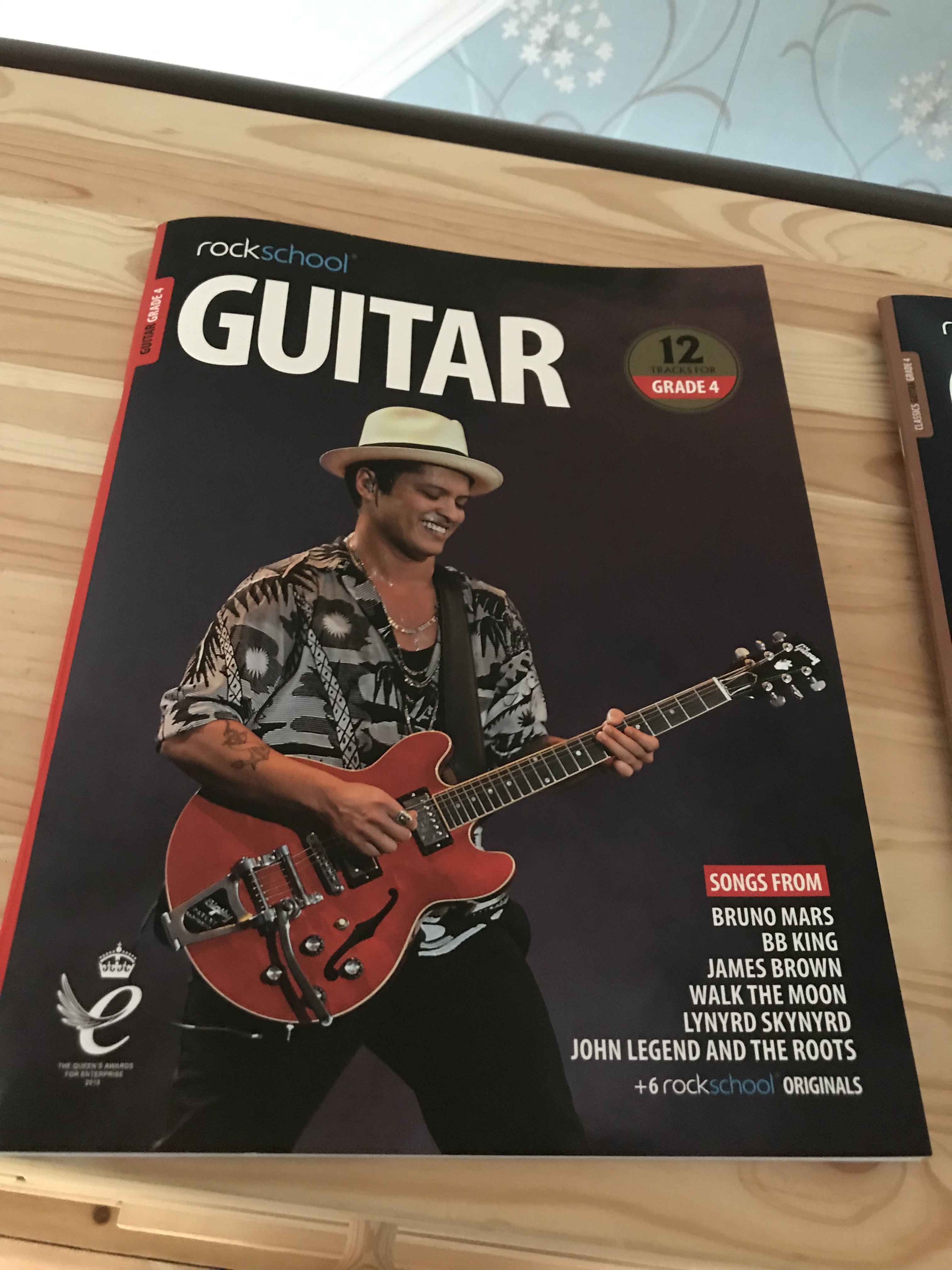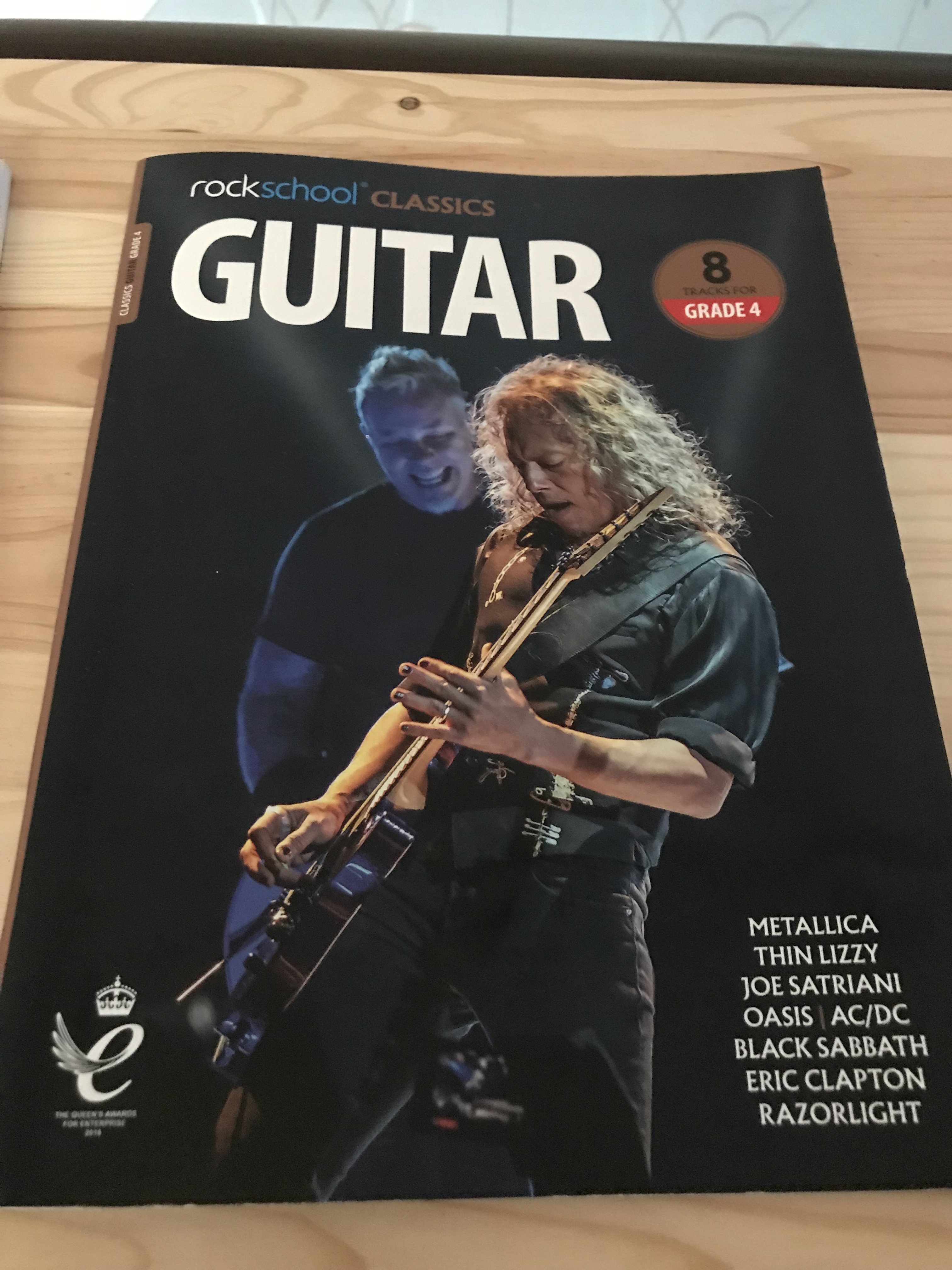 At the moment I am preparing for my Rockschool grade 4 exam. For the exam I have to learn 3 songs, 5 scales, 3 arpeggios, 3 dominant 7th chords, a riff, harmonic and melodic recall and I have the choice between sight reading or improvisation; all of which are in the Rockschool grade 4 guitar book. I am also using the grade 4 companion book.