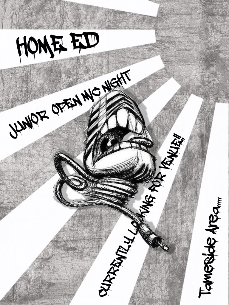 Below is a copy of my poster that I am using to advertise for space for my open mic night, I am advertising the open mic night as a home ed event to help give a platform to home ed musicians.